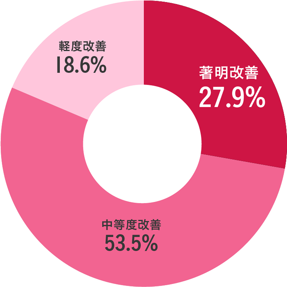 主要評価項目である最終全般改善度の改善率は、中等度改善以上で81.4%でした。
