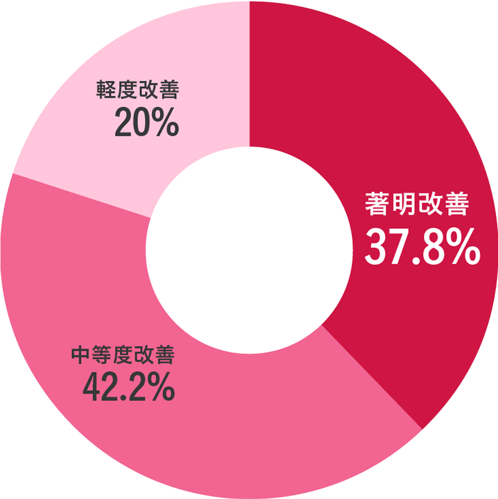主要評価項目である最終全般改善度の改善率は、中等度改善以上で80%でした。